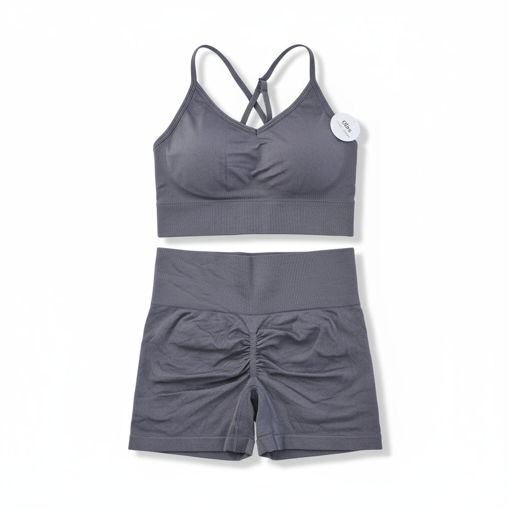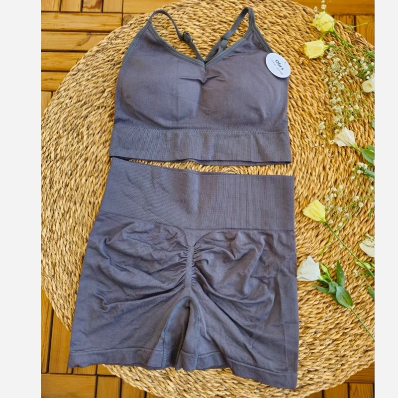 ست نیمتنه و شورتک ورزشی زنانه سیملس فری سایز طوسی